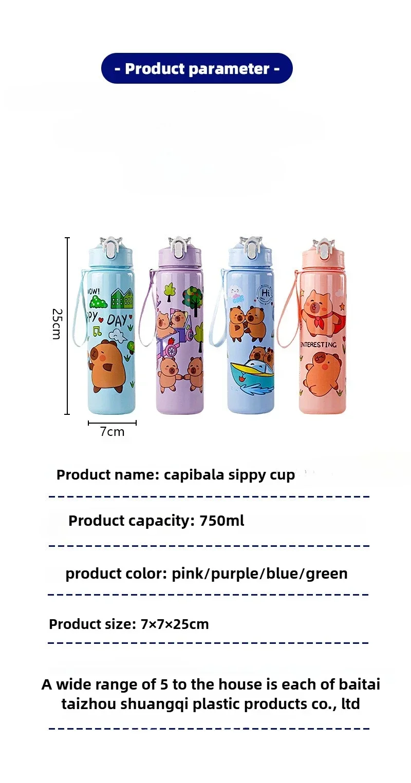 1/2/4PCS 750ml Capybara Straw Mug Cute Kids Water Bottle with Adjustable Strap Portable Cartoon Design School Student Drinkware