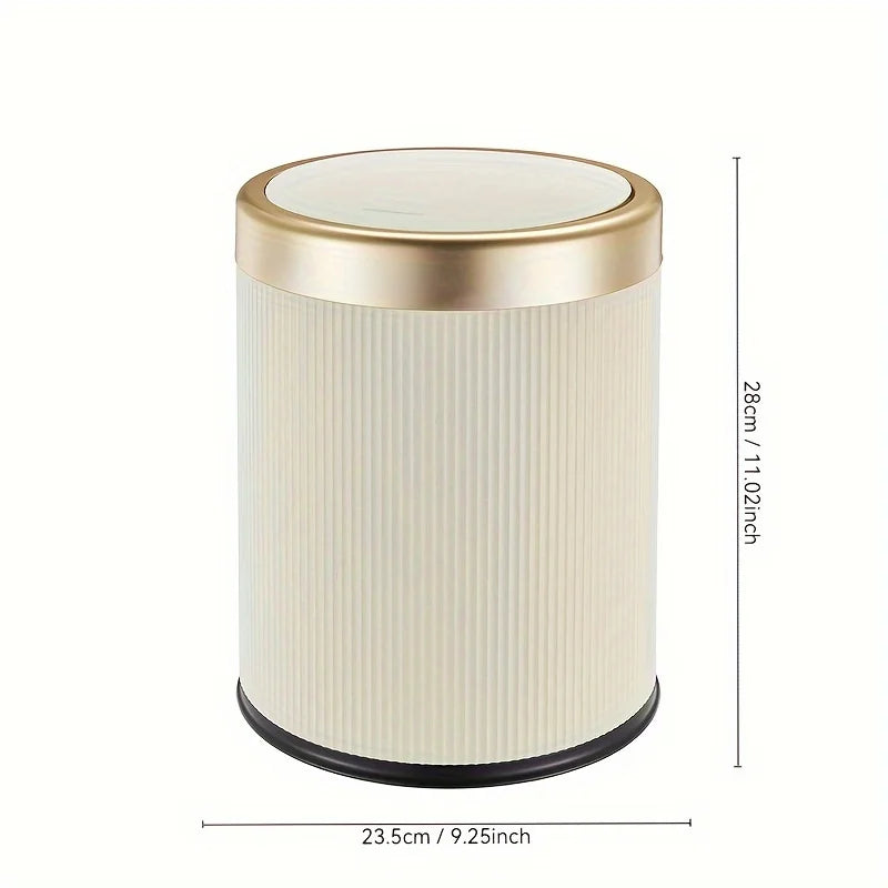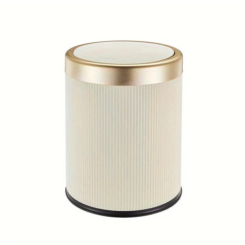 1 fashionable circular top garbage bin with gold edge - durable, stylish storage essential household garbage basket