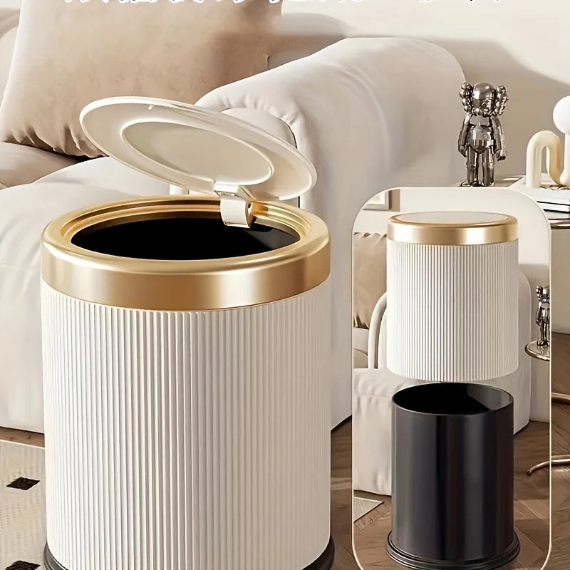 The bin features a stylish gold edge, adding a touch of elegance to any room while effectively hiding trash.