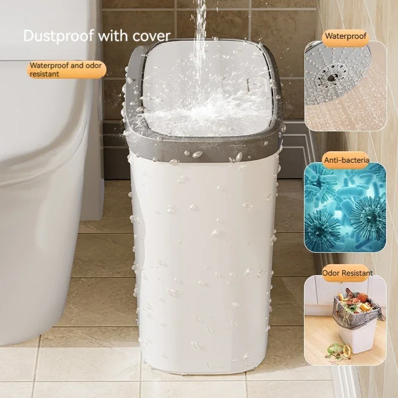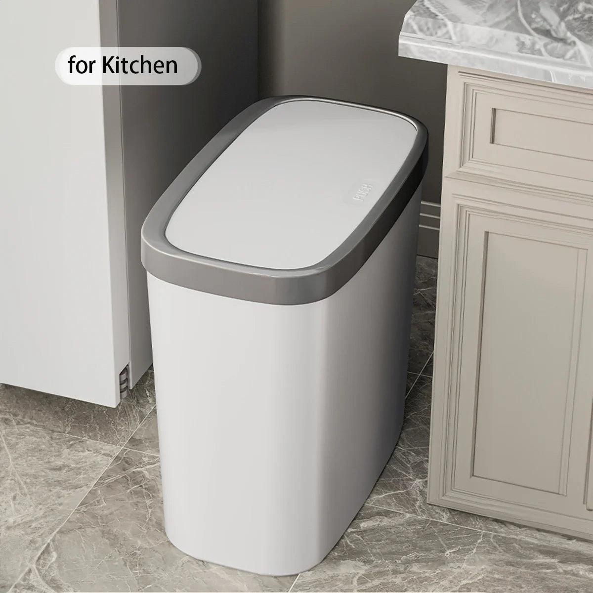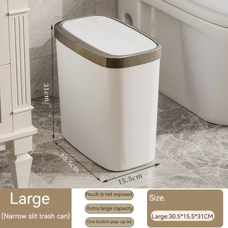 12/16L Press-type Covered Trash Can Bathroom Living Room Wastbasket with Lid Narrow Garbage Can Waterproof Dustbin Paper Basket