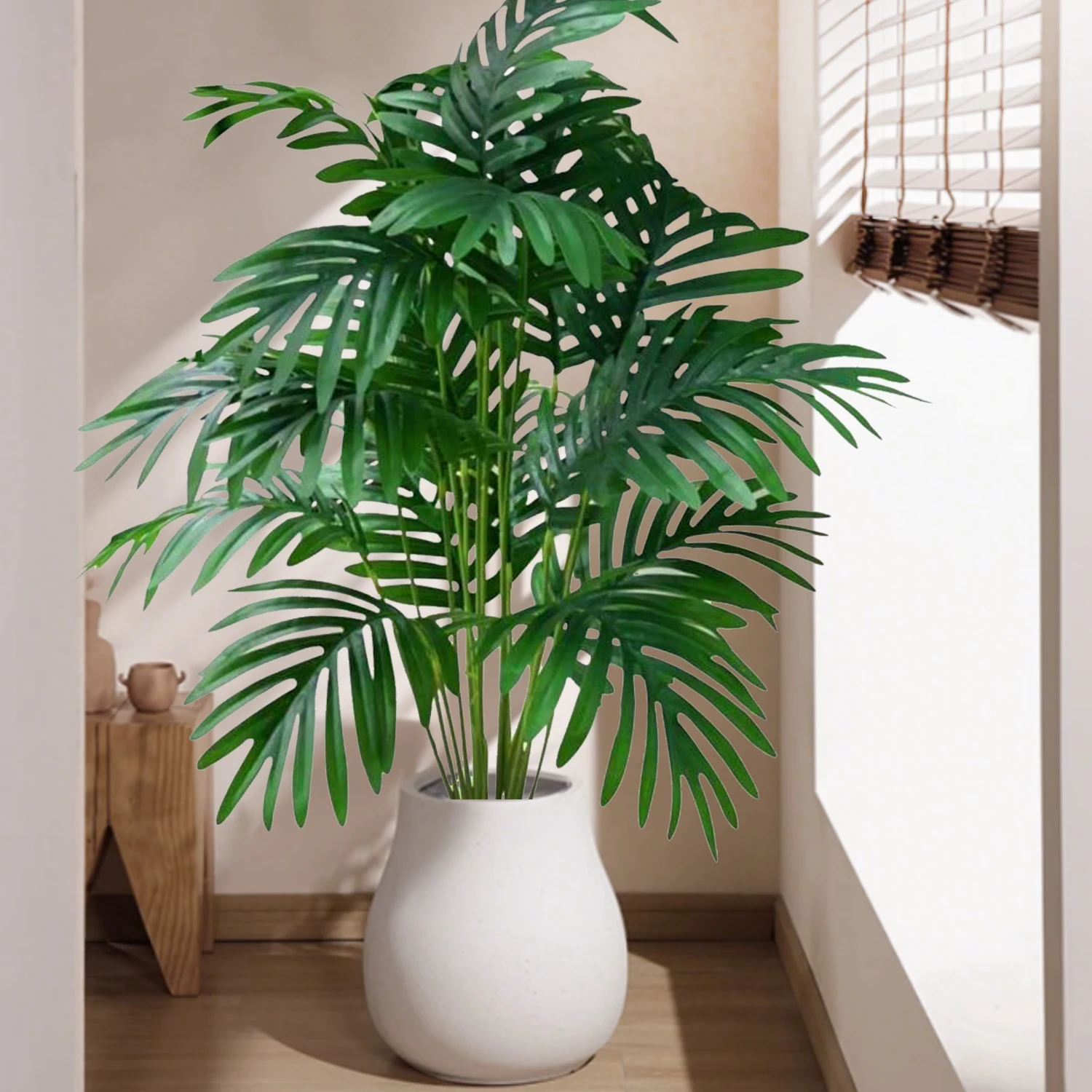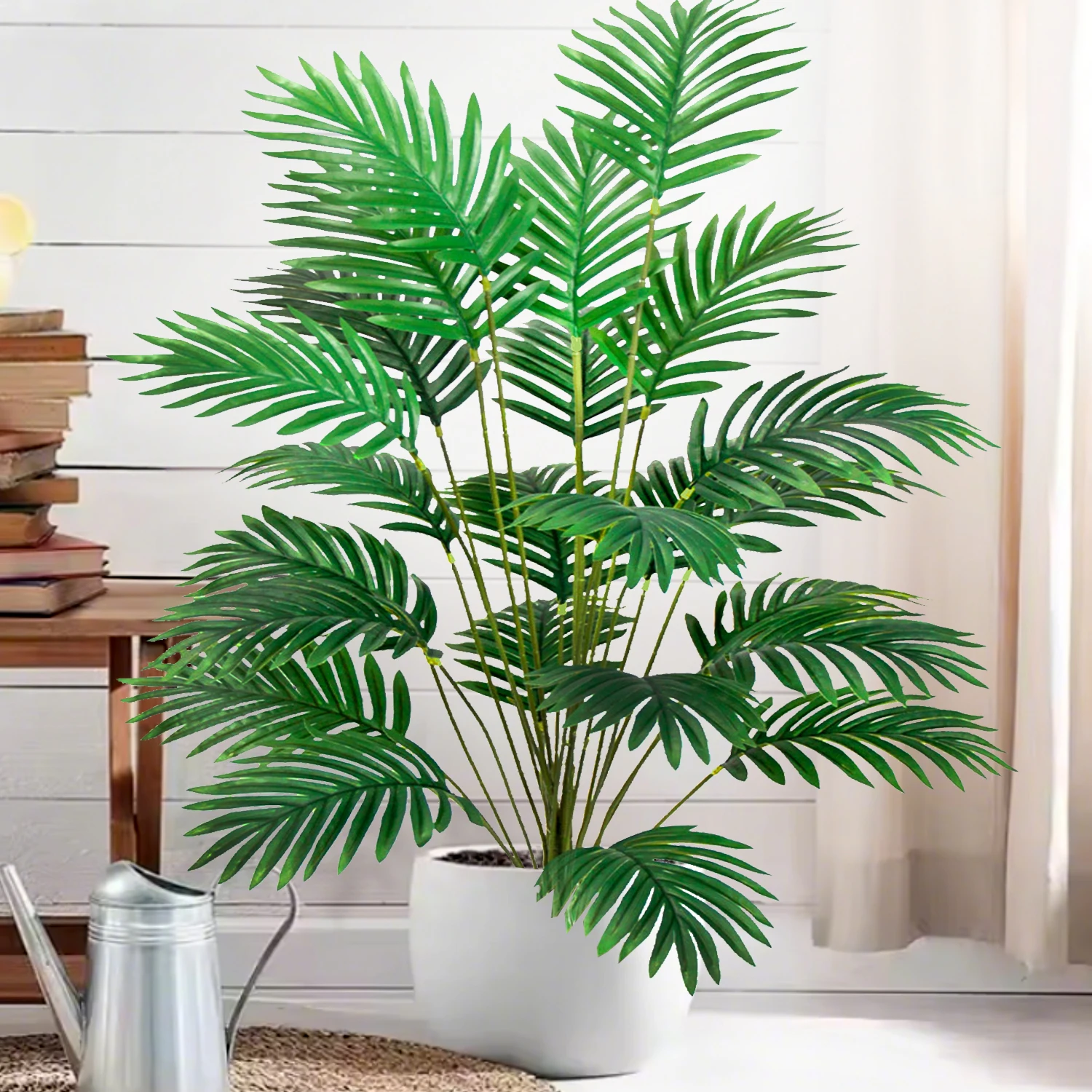 66-125cm(49.2in) Artificial Palm Tree Tropical Fake Plant Green Plastic Palm Leaf Branches Suitable for Home Garden Decoration
