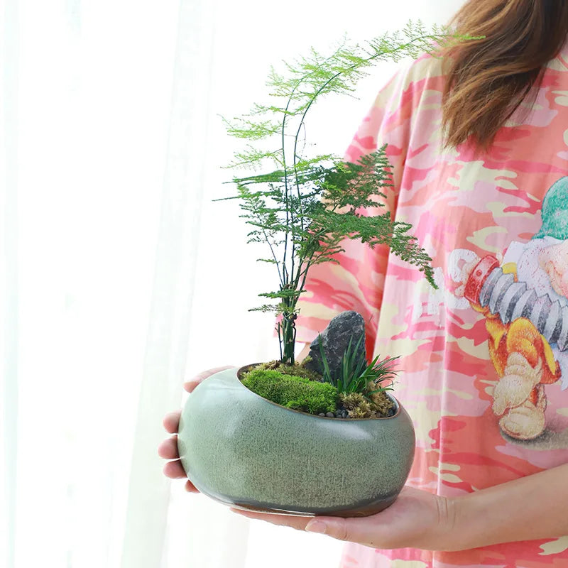Retro ceramic small flower pot creative desktop home succulent green plant Wenzhu potted utensils Chinese garden handmade